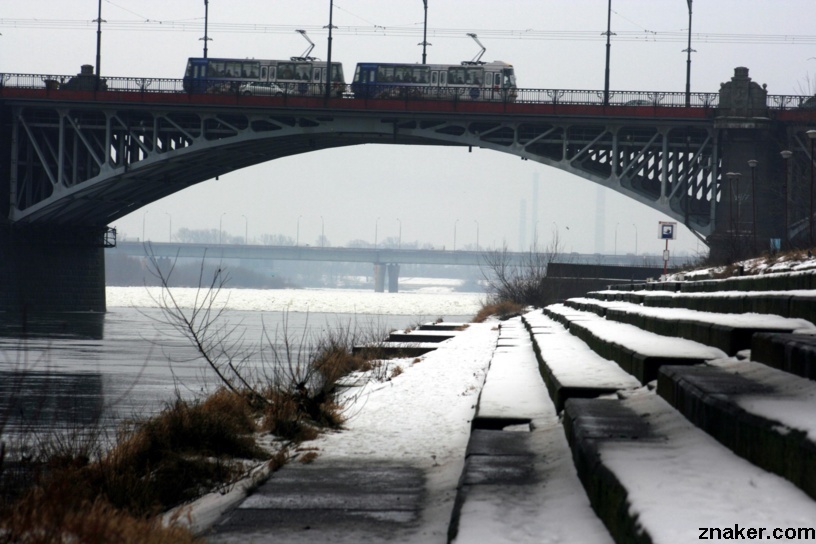 Most Śląsko Dąbrowski na fotografii pierwszej i most Poniatowski na drugiej. Zdjęcia wykonano Zimą 2008 roku. Kra na Wiśle. Warszawskie klimaty. Szaro, buro i zimno.